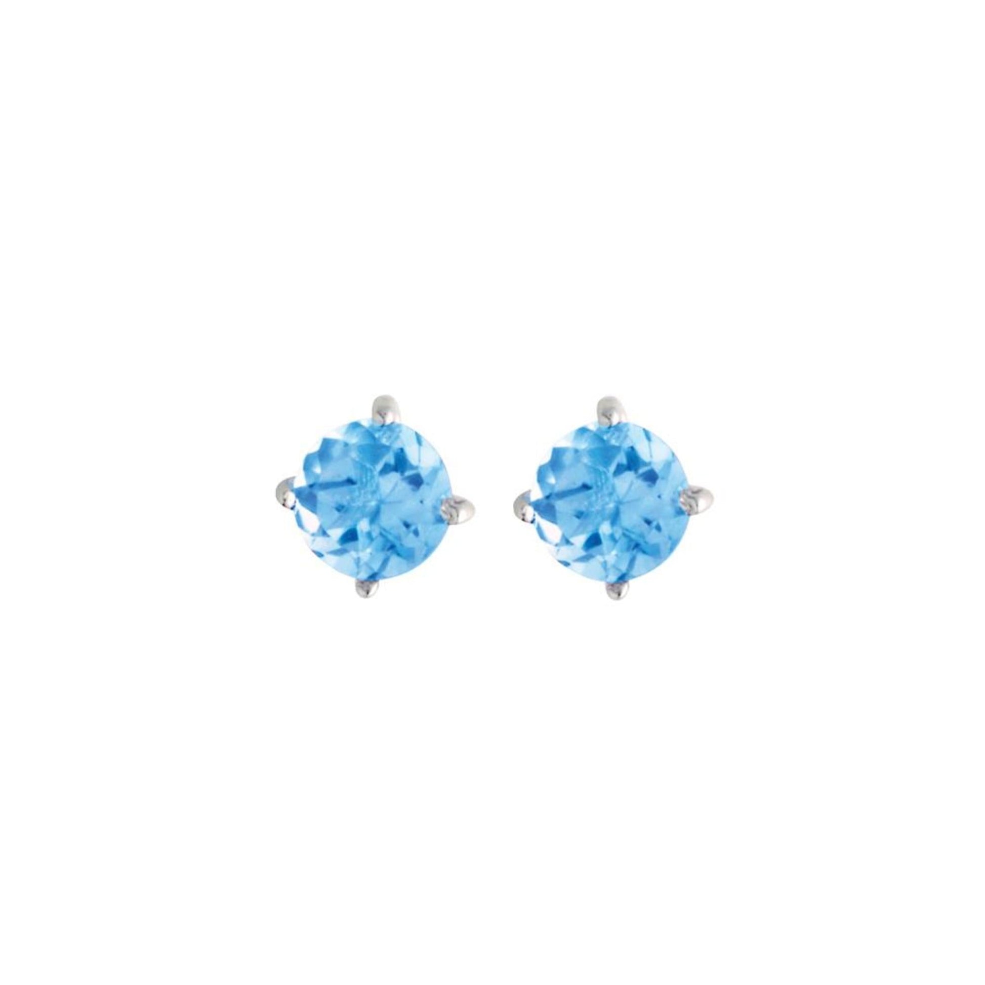 Bright jewel earrings dance and shine in the light. Classic stud style. Genuine 5mm blue topaz are featured in a simple yet elegant design. Feature polished sterling silver backings. E-Coat placed over sterling silver to help prevent tarnish. For pierced ears only. Ships in a Jilco custom purple gift box that holds every piece to perfect. Gift box features a ribbon and protective tissue paper.
