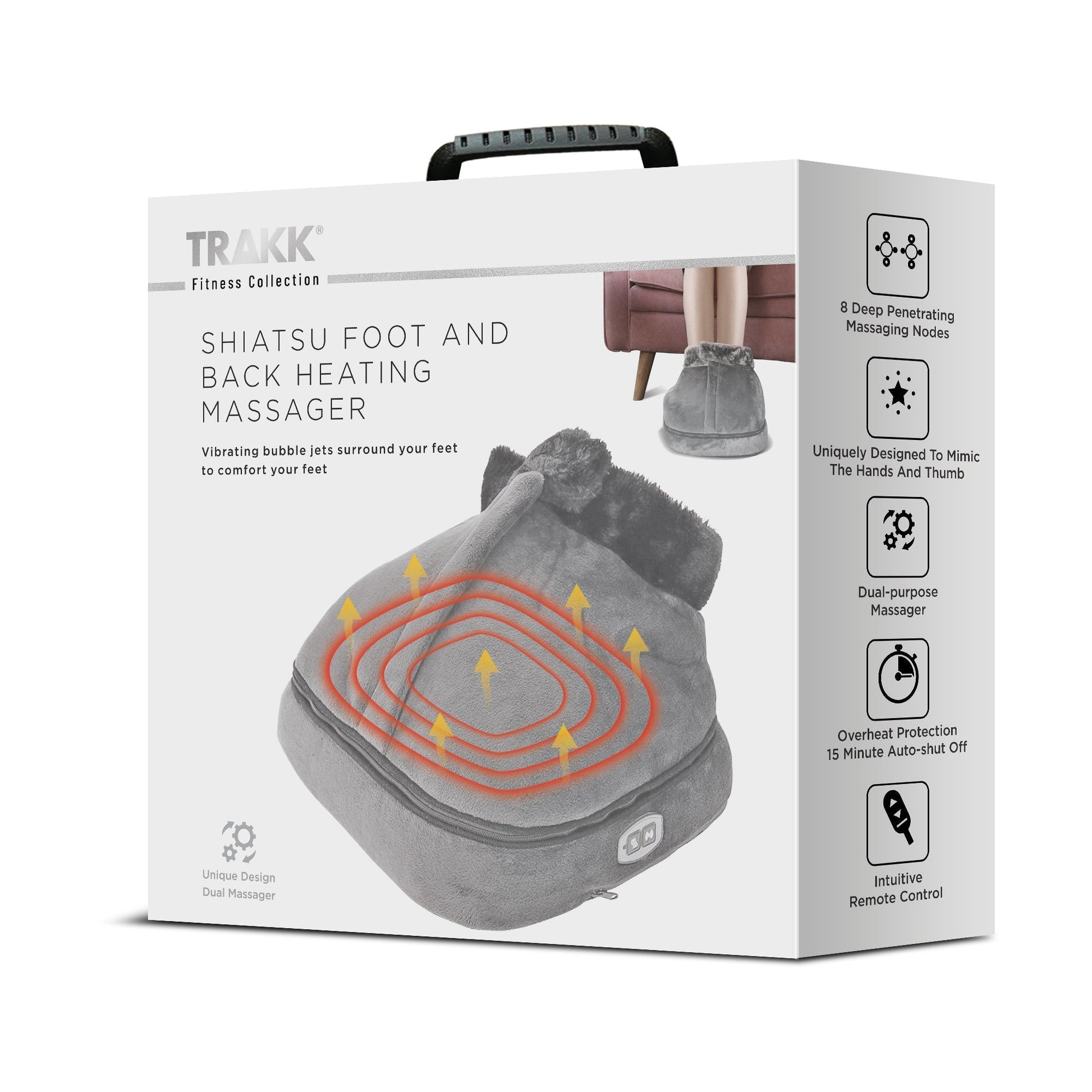 Trakk Shiatsu Foot and Back Heating Massager. 113 degree heat massager with smart vibration mode massage feature for feet and back.